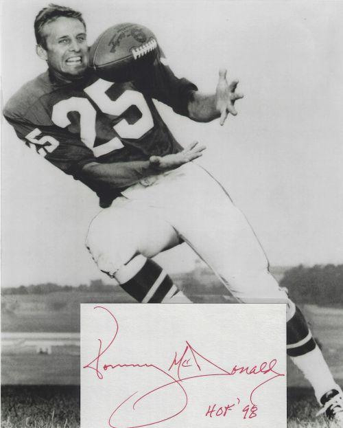 Steve Owens (Oklahoma Sooners) autographed cut on an 8x10 photo. The photo and signature cut have been professionally laminated together to protect and preserve their quality and condition. By placing this authentic signature cut on the photo, it has significantly increased it's value and desirability! No more looking at a boring index card or piece of paper. Photo is in MINT condition.