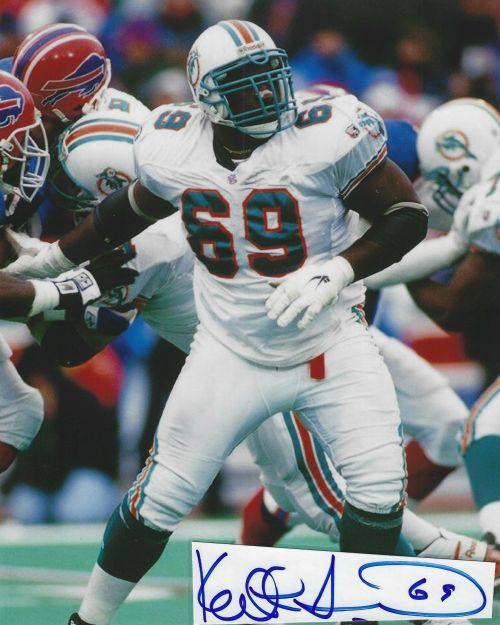 Keith Sims (Miami Dolphins) autographed cut on an 8x10 photo. The photo and signature cut have been professionally laminated together to protect and preserve their quality and condition. By placing this authentic signature cut on the photo, it has significantly increased it's value and desirability! No more looking at a boring index card or piece of paper. Photo is in MINT condition.