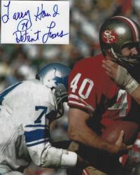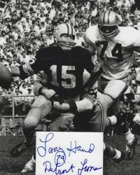 Larry Hand (Detroit Lions) autographed cut on an 8x10 photo. The photo and signature cut have been professionally laminated together to protect and preserve their quality and condition. By placing this authentic signature cut on the photo, it has significantly increased it's value and desirability! No more looking at a boring index card or piece of paper. Photo is in MINT condition.