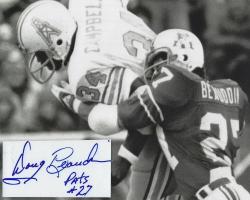 Doug Beaudoin (New England Patriots) autographed cut on an 8x10 photo. The photo and signature cut have been professionally laminated together to protect and preserve their quality and condition. By placing this authentic signature cut on the photo, it has significantly increased it's value and desirability! No more looking at a boring index card or piece of paper. Photo is in MINT condition.