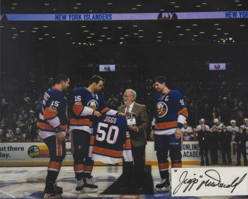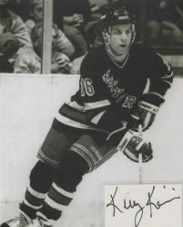 John Ogrodnick (Detroit Red Wings) autographed cut on an 8x10 photo. The photo and signature cut have been professionally laminated together to protect and preserve their quality and condition. By placing this authentic signature cut on the photo, it has significantly increased it's value and desirability! No more looking at a boring index card or piece of paper. Photo is in MINT condition.