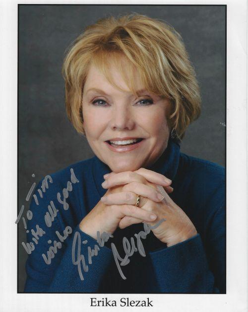 Erika Slezak autographed 8x10 photo. Photo has a few bends but are difficult to notice when flat. All autographs are 100% guaranteed and come with a certificate of authenticity from www.RKSportsPromotions.com.