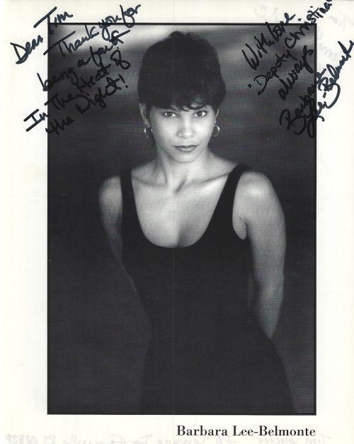 Barbara Lee-Belmonte autographed 8x10 photo. Barbara also wrote a note on the back which some of can be seen from the front side. All autographs are 100% guaranteed and come with a certificate of authenticity from www.RKSportsPromotions.com.