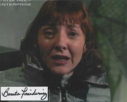 Bonita Friedericy (Actress) autographed cut on an 8x10 photo. The photo and signature cut have been professionally laminated together to protect and preserve their quality and condition. By placing this authentic signature cut on the photo, it has significantly increased it's value and desirability! No more looking at a boring index card or piece of paper. Photo is in MINT condition.