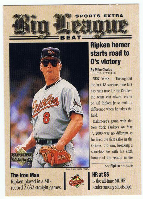 2001 Upperdeck Big League Beat #BB8 Cal Ripken Jr. (Baltimore Orioles) in mint condition.