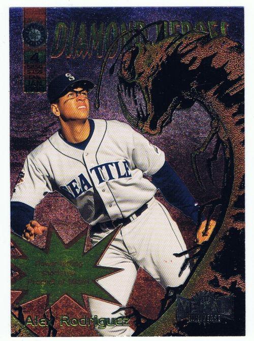 1998 Metal Universe Diamond Heroes #4 Alex Rodriguez (Seattle Mariners) in mint condition.