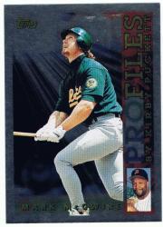 1996 Topps Profiles #AL-18 Mark McGwire (Oakland A's) in mint condition.