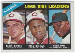 1966 Topps #219 Willie Mays/Frank Robinson/Deron Johnson RBI Leaders in nmt condition.