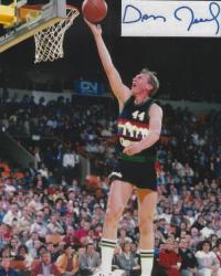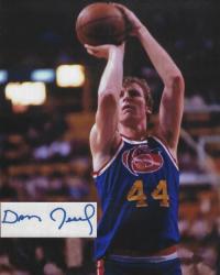 Dan Issel (Denver Nuggets - Hall Of Fame) autographed cut on an 8x10 photo. The photo and signature cut have been professionally laminated together to protect and preserve their quality and condition. By placing this authentic signature cut on the photo, it has significantly increased it's value and desirability! No more looking at a boring index card or piece of paper. Photo is in MINT condition.