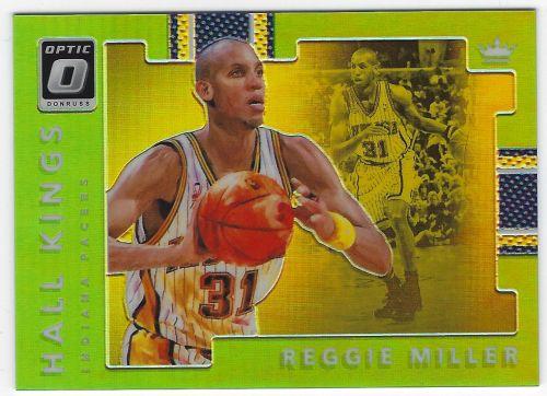 2017-18 Donruss Optic Hall Kings Lime Green #25 Reggie Miller (Indiana Pacers) #121/149 in mint condition.