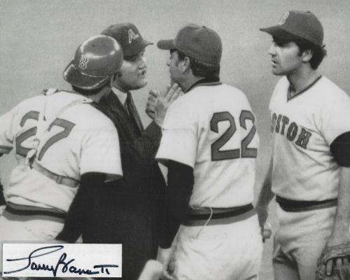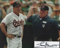 Larry Barnett (Umpire) autographed cut on an 8x10 photo. The photo and signature cut have been professionally laminated together to protect and preserve their quality and condition. By placing this authentic signature cut on the photo, it has significantly increased it's value and desirability! No more looking at a boring index card or piece of paper. Photo is in MINT condition.