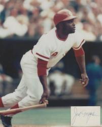 Joe Morgan (Cincinnati Reds - Hall Of Fame) autographed cut on an 8x10 photo. The photo and signature cut have been professionally laminated together to protect and preserve their quality and condition. By placing this authentic signature cut on the photo, it has significantly increased it's value and desirability! No more looking at a boring index card or piece of paper. Photo is in MINT condition.