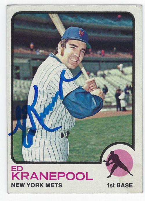 Ed Kranepool (NY Mets) autographed 1973 Topps card. All autographs are 100% guaranteed and come with a certificate of authenticity from www.RKSportsPromotions.com.