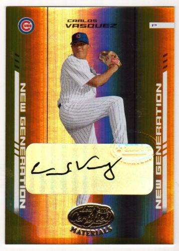 2004 Leaf Certified Materials Carlos Vasquez (Chicago Cubs) #9/25 Autograph card in mint condition.